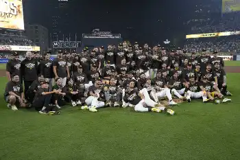 ブレーブスに先勝して迎えた第2戦。1点を追う2回、日系4世の捕手・ヒガシオカが2戦連発の同点ソロを放つと、マチャドの勝ち越し二塁打など2死からの6連打で5点を挙げて逆転した。連勝で地区シリーズ進出決定。相手は大谷擁するドジャースだ。