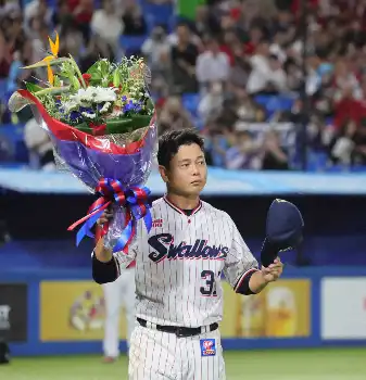 試合後の本拠地最終戦セレモニーで高津監督から「先輩からイジられ後輩から嫌がられ、走攻守三拍子、非常に微妙な選手でした」とイジられると球場は爆笑に包まれた。