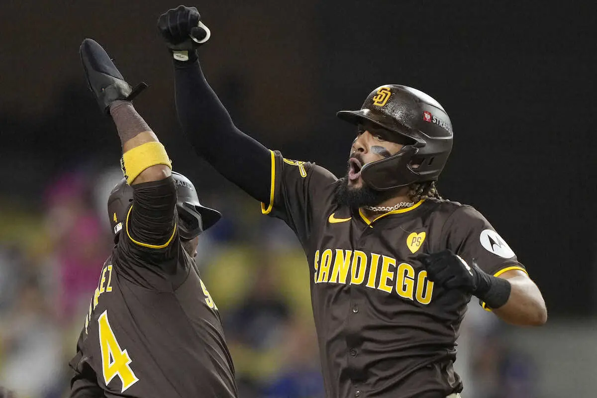 パドレスは6日(日本時間7日)、敵地ドジャースタジアムで行われたドジャースとの地区シリーズ第2戦でポストシーズン史上最多タイ記録となる6本塁打が飛び出すなど、打線が10得点と爆発。ドジャースに大勝し、対戦成績を1勝1敗のタイに戻した。