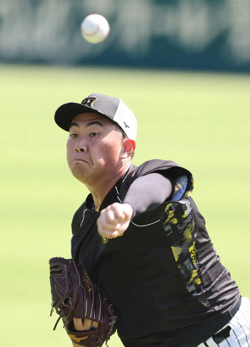 キャッチボールする阪神・桐敷(撮影・大森 寛明)