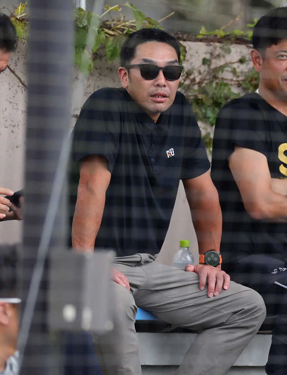 <フェニックスリーグ 巨・神>視察する阿部監督(撮影・光山 貴大)