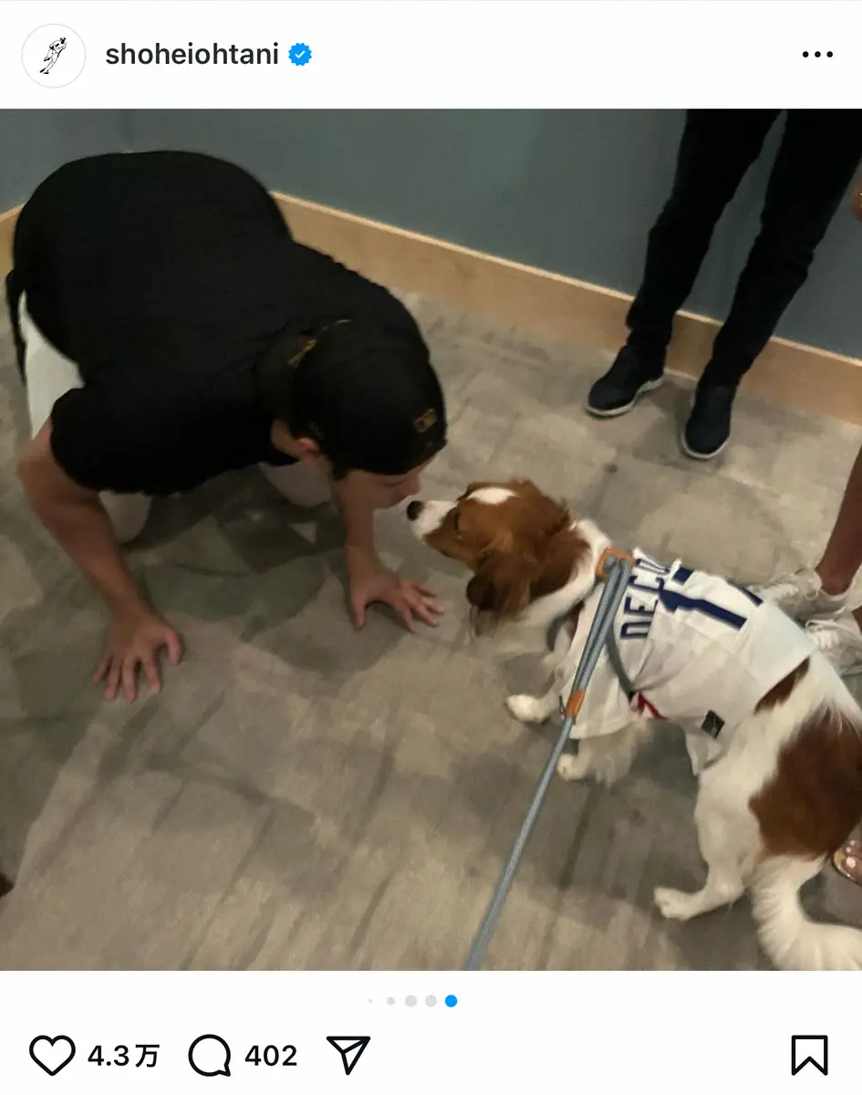 大谷翔平 ド軍地区S突破後初!SNS更新「痺れた」祝福の嵐 愛犬デコピンとの“超接近ショット”も公開