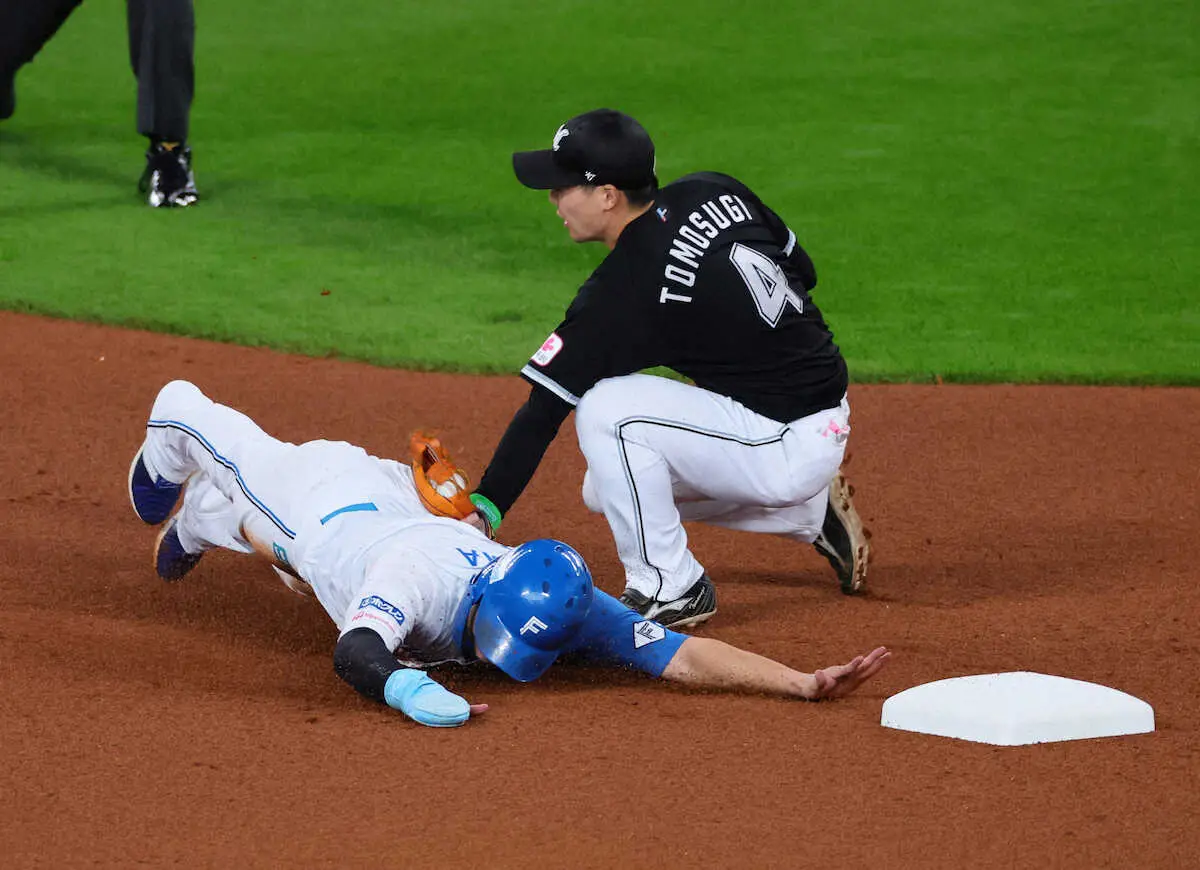 22年にリーグトップの盗塁阻止率・361だった佐藤は、今季は両リーグワーストの・187。佐々木とのコンビでは・100だった。佐々木もカード別最多の7盗塁を許していた「新庄野球」を封じた、値千金の盗塁阻止だった。 (秋村 誠人)