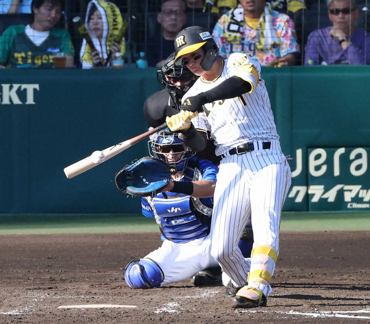 快挙にも、あとわずかだった。6回1死無走者の3打席目。佐々木が真ん中付近に投じたスライダーに、微妙にタイミングをずらされた。バットの先端で拾った打球は虎党の歓声を浴びつつ青空に打ち上がったが、左翼フェンス手前で失速。プロ野球史上2人目の新人から2年連続のプレーオフ、CSでの本塁打はお預けとなった。0―3の8回2死一、三塁では伊勢の外角151キロの直球に見逃し三振。「いいボールを放られて自分もちょっと手が出なかった」。悔しさをかみしめた。