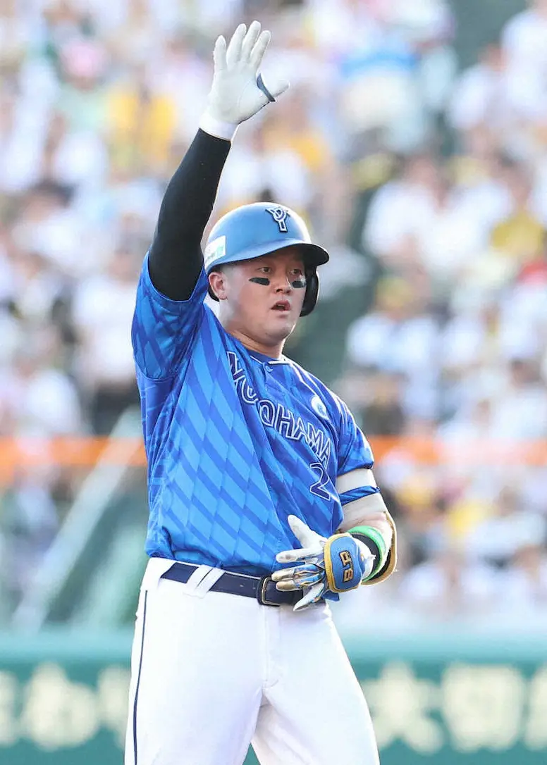 そう振り返ったのは佐野だ。3回先頭・牧の中前打に続き、初球のフォークを左翼線二塁打し無死二、三塁。1死満塁から桑原の遊ゴロ併殺崩れでの先制点につながった。7回も1死から牧が二塁打し、佐野も左前打。続くオースティンの右中間二塁打でそろって生還し、貴重な追加点も生み出した。ファーストSで敗退した昨年は「右有鉤(ゆうこう)骨骨折」で欠場し、悔しさを味わっていた佐野は「喜びを打席で表現できた」と胸を張った。
