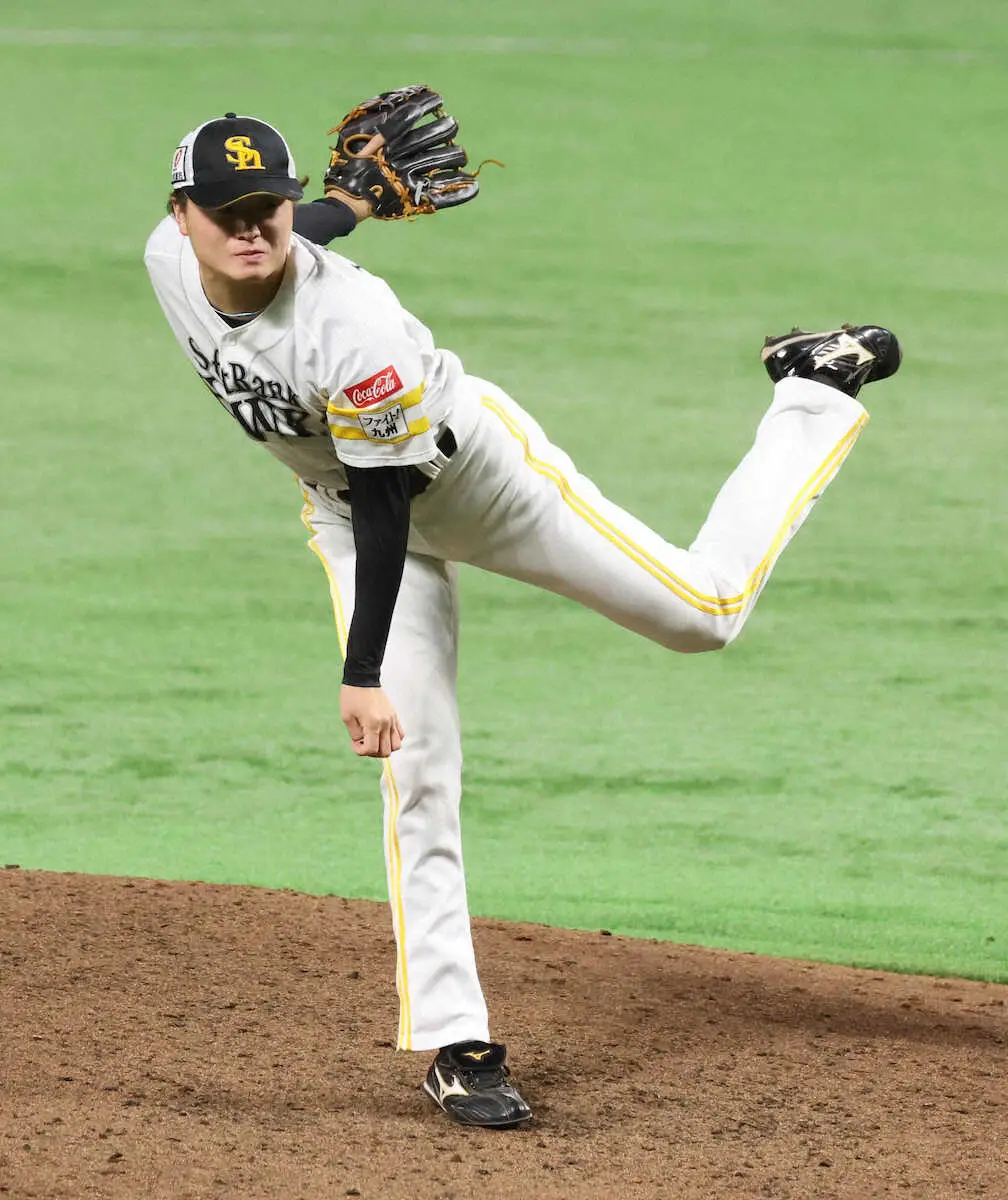 最速143キロの直球とチェンジアップの切れは抜群。小久保監督は「真っすぐを分かっていても空振りする。(スピード)ガンより全然速いのでは」と称えた。