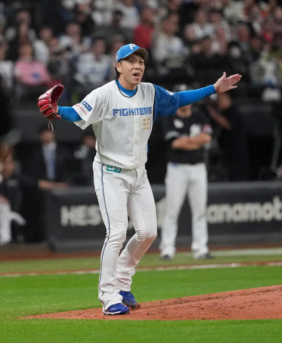 <日・ロ>9回、友杉を三ゴロに打ち取った宮西(撮影・高橋 茂夫)