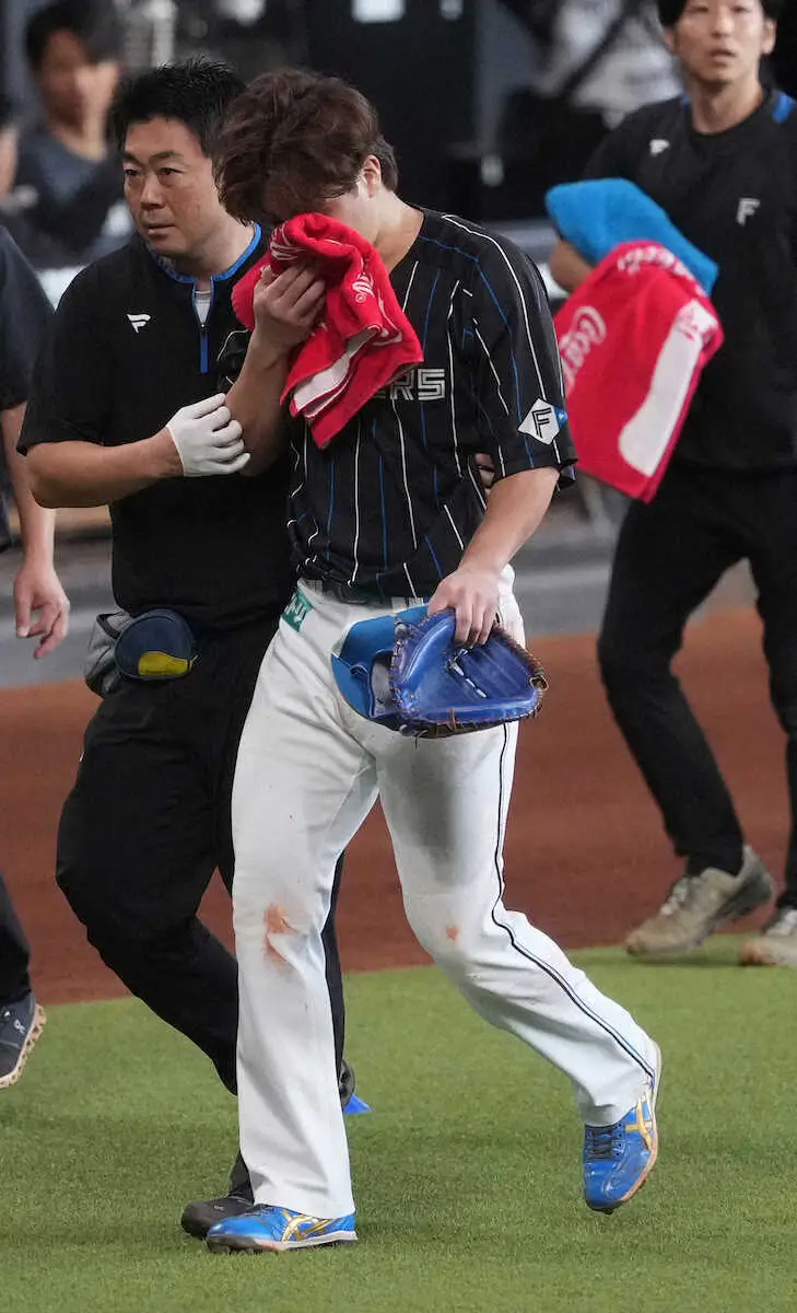 ベテラン捕手の日本ハム・伏見がアクシデントに見舞われた。試合前練習中、三塁で受けていたノックの打球が顔面を直撃。
