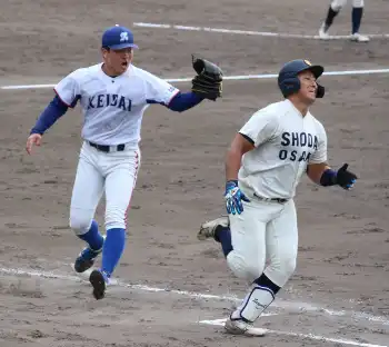今秋ドラフト1位候補に挙がる渡部聖弥(4年)が意外な形で劇勝を演出した。0―1の9回無死一、二塁で初球をバントし、投前に成功させた。その直後に捕手の適時失策が生まれて同点に追いつき、2死満塁から代打・蜷川大(3年)が左前へサヨナラ打を放った。