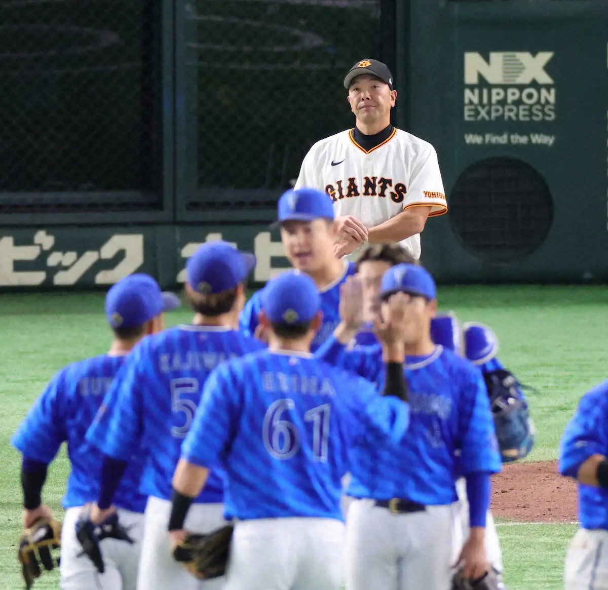 初戦が4安打無得点、この日が5安打1得点。レギュラーシーズンで12勝の戸郷、15勝の菅野を先発投手に立てながらも貧打でまさかの開幕2連敗となった巨人の阿部慎之助監督(45)はさすがに厳しい表情だった。