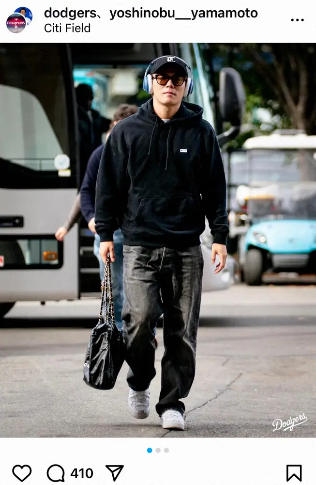 ドジャースは17日(日本時間18日)、敵地でメッツとのナ・リーグ優勝決定シリーズ第4戦に臨む。球団公式インスタグラムは先発する山本由伸投手(26)の球場入りする姿を投稿した。