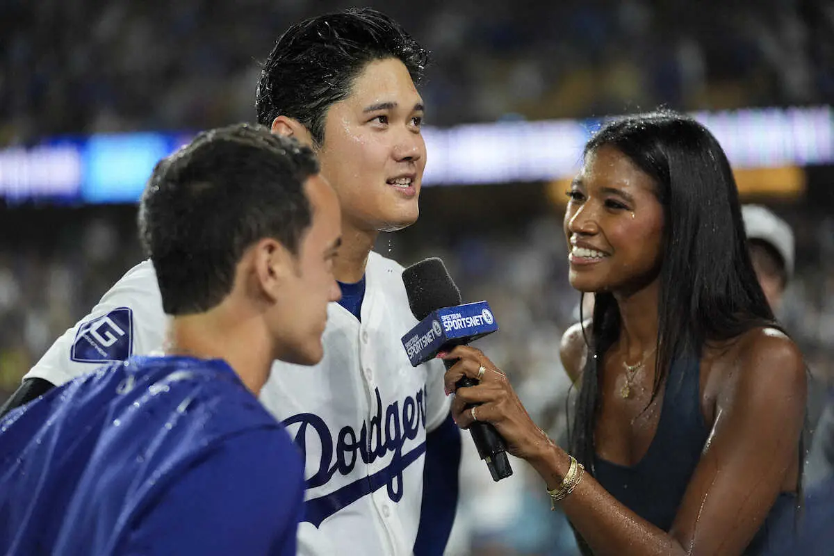 8月23日のレイズ戦で大谷が劇的なサヨナラ満塁本塁打を放った試合後、インタビュー中にウオーターシャワーの祝福を受けた大谷に巻き添えになり、全身ずぶ濡れに。地区シリーズ突破を決めたパドレスとの第5戦の試合後のシャンパンファイトでもインタビュー中に勝利の美酒を選手からかけられ、またしてもずぶ濡れになり話題となった。
