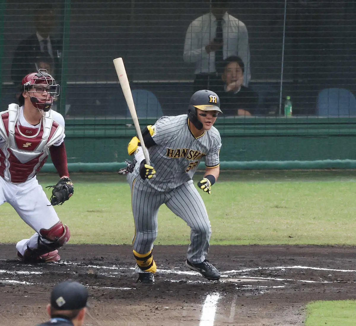 3回降雨ノーゲームとなったこの日は二ゴロと四球。オフの課題は「(スイングの)インサイドアウトと守備向上、その2点」と明確で、指揮官をうならせる成長を期す。