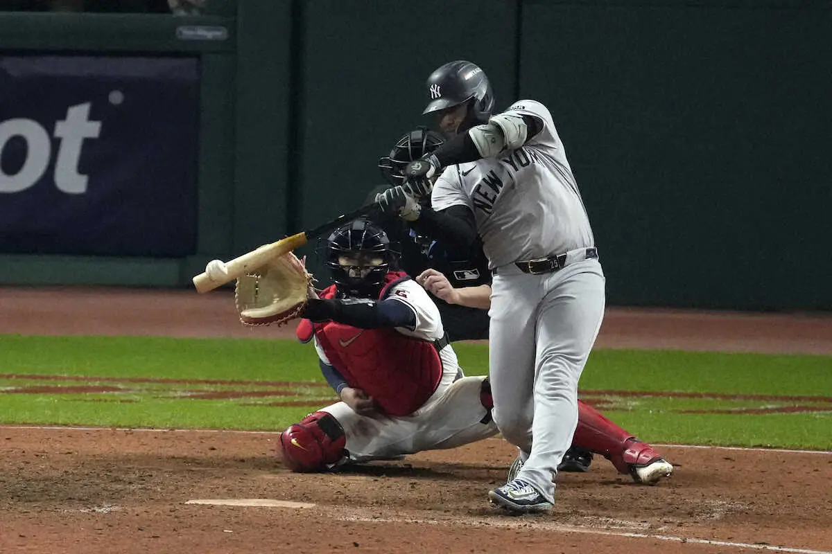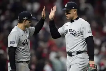 <ヤンキース・ガーディアンズ>勝利を喜ぶヤンキースのジャッジ(右)とリゾ(AP) Photo by AP ヤンキース15年ぶりワールドシリーズ進出王手! 8回に追いつかれるも9回敵… ギャラリーで見る この記事のフォト 2024年10月19日の画像一覧 もっと見る 2024年10月19日の画像をもっと見る