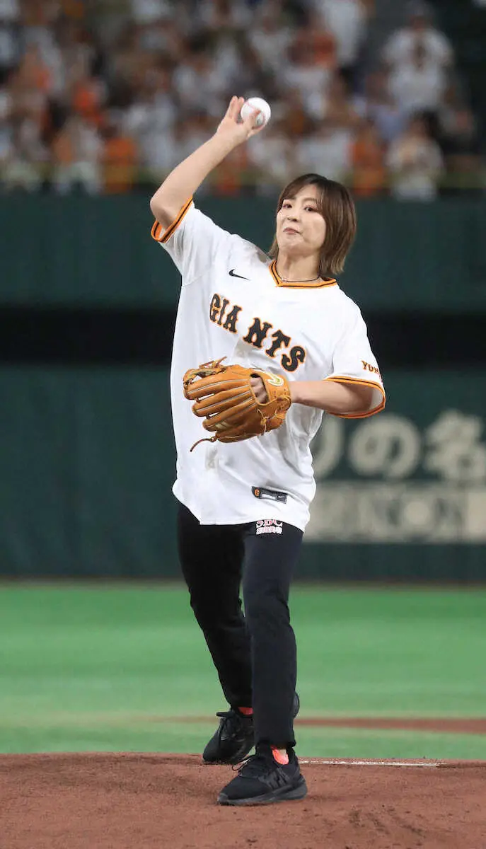 始球式が決まってからグラブを購入して約2週間練習。「暗い公園でも練習した。どこか行かなくて良かった」と笑顔だった。