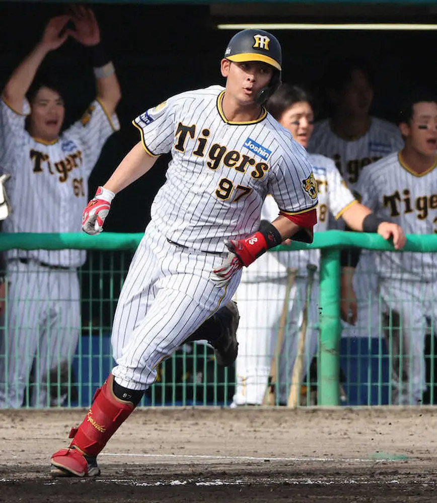 「6番・DH」で先発出場。味方が守備の際はベンチ横でスイングを続けるなど準備を徹底した。その姿勢を藤川監督も評価。「DHだったので、サイドで振る準備をしていた。そういう準備の大切さが見えた」。2年目の今季は初めて1軍舞台を経験。しかし8月21日には出場選手登録を抹消された。打率.189、0本塁打、5打点と苦戦。「上(1軍)でやり返せるようにしたい」。来季にかける右の大砲候補も新指揮官に持ち前の打力を印象づけた。