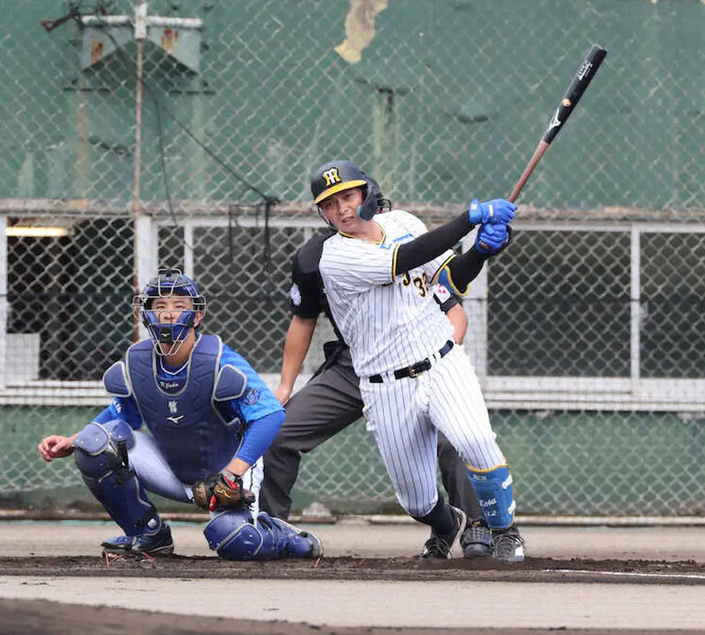 高卒6年目の来季、外野の一角を狙う阪神・井上が、2本のタイムリーで藤川監督に猛アピールした。「4番・右翼」で先発出場して、初回1死一、二塁で先制の中前打。1―3の6回無死一、二塁でも左前に適時打を放って逆転の流れを演出した。1本目が真っすぐ、2本目がスライダーを捉えた。