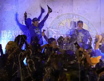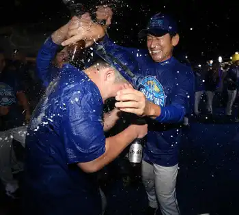 DeNA 選手は色とりどりのリーゼントで歓喜のビールかけへ! 三浦監督はキャップ姿
