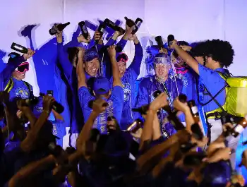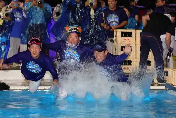 2003年11月、東京六大学秋季リーグで優勝した早大の鳥谷(後列左)と青木(同右)