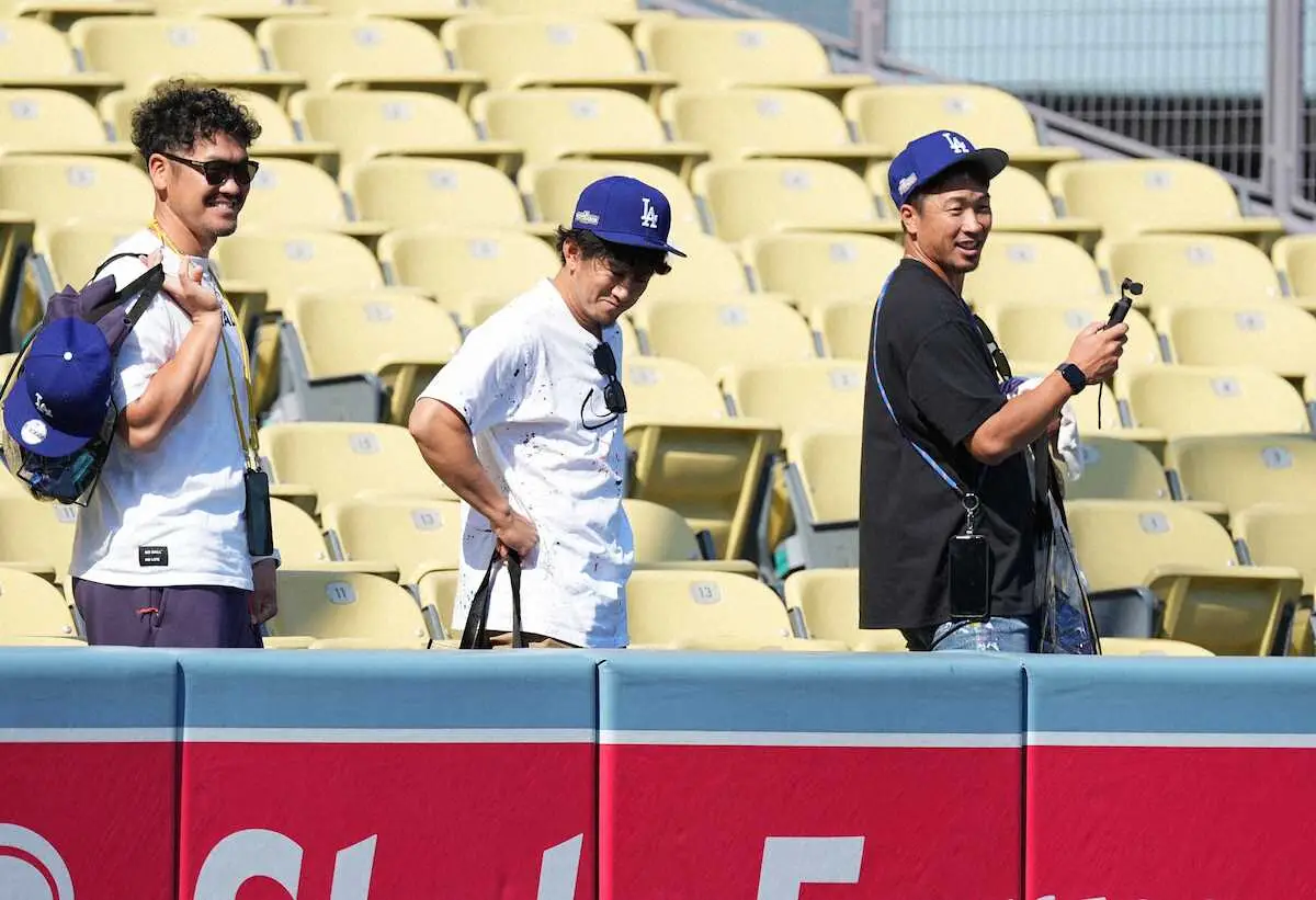 <ドジャース・メッツ練習>試合前、(右から)元チームメイトの安達、小田、T岡田、鈴木と話す山本(撮影・沢田 明徳) Photo by スポニチ 山本由伸に心強い援軍! かつてのチームメートT―岡田、安達らがドジャー… ギャラリーで見る この記事のフォト 2024年10月21日の画像一覧 もっと見る 2024年10月21日の画像をもっと見る