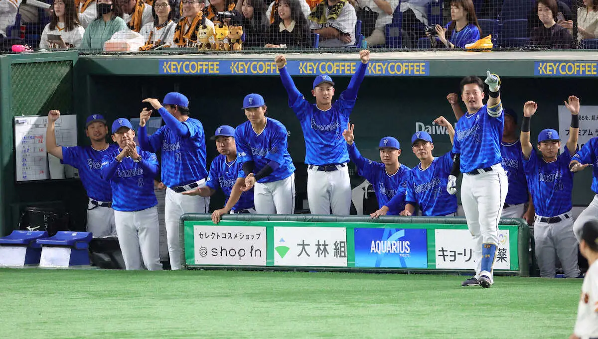 <巨・D>5回、森敬の適時三塁打に沸くDeNAベンチ (撮影・白鳥 佳樹)