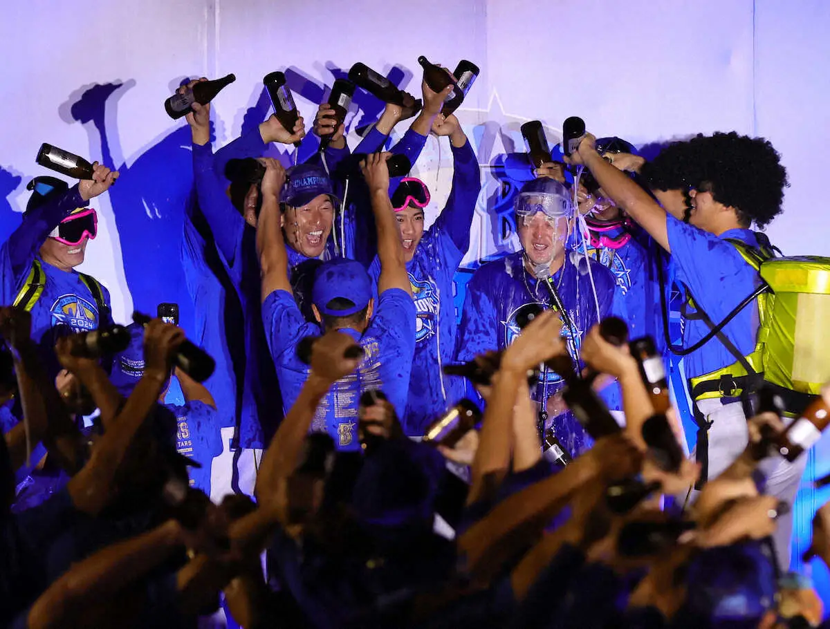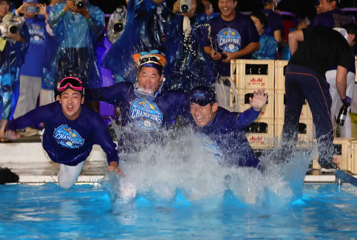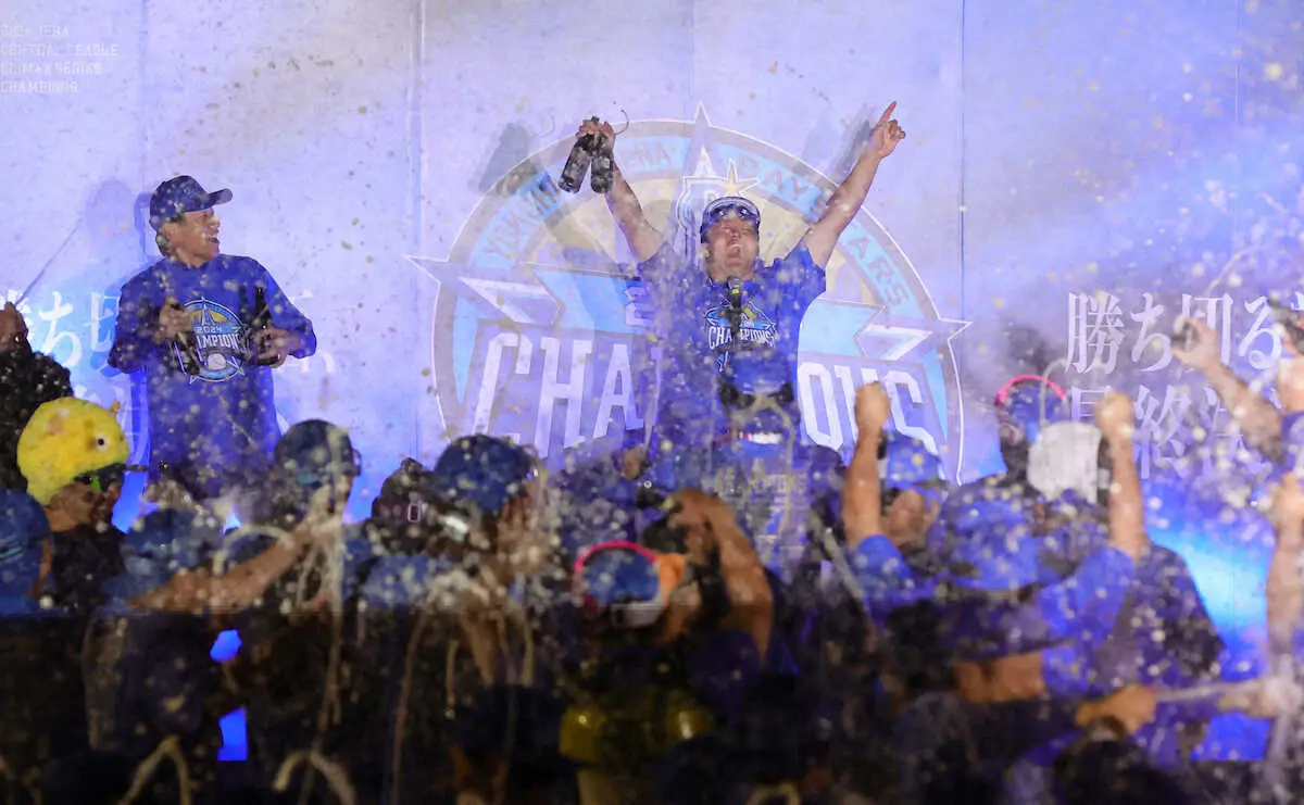 三浦監督が牧にビールをかける(撮影・島崎忠彦> Photo by スポニチ DeNA・牧 ビールかけで監督イジる「泣いてましたよね?」「日本一になっ… ギャラリーで見る この記事のフォト 2024年10月22日の画像一覧 もっと見る 2024年10月22日の画像をもっと見る