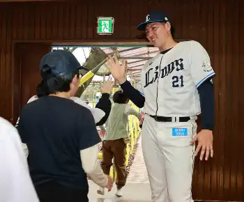 西武・武内 所沢の小学校訪問 ストラックアウトでプロ技披露
