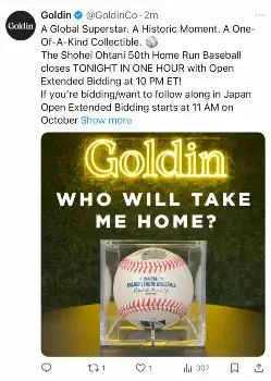 オークション終了後、同社の公式Xでは「大谷翔平50号記念球 最終販売価格:439万2000ドル」とし「あらゆるスポーツのあらゆるボールにおける最高額!」と伝えた。