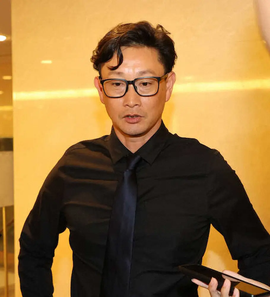 <オリックス・スカウト会議>会議を終え取材に応じるオリックス・岸田新監督 (撮影・村上 大輔)