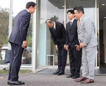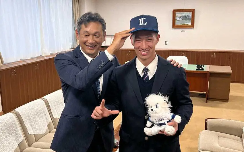 (左から)西武・西口監督と広池球団本部長から指名あいさつを受けた金沢・斎藤 Photo by スポニチ 西武ドラ1金沢・斎藤に指名あいさつ 急きょ訪問の西口監督が守備力絶賛「… ギャラリーで見る この記事のフォト 2024年10月25日の画像一覧 もっと見る 2024年10月25日の画像をもっと見る