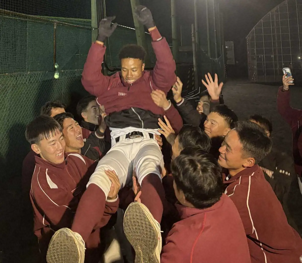 旭川志峯が誇る強打の外野手、ウメビンユオは練習後もグラウンドに残り、山本博幸監督や仲間と喜びをかみしめた。ギリギリでの西武育成7位指名に「ドキドキしていた。夢がかないました。1年目から活躍できる選手になりたい」と素直な思いを口にした。