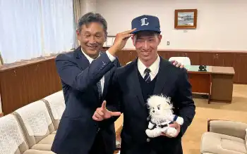 西武ドラ1金沢・斎藤に指名あいさつ 急きょ訪問の西口監督が守備力絶賛「ゲームで言えばS」大型遊撃手