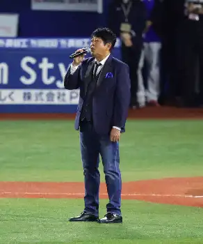 開幕し、横浜スタジアムでの第1戦試合前に音楽バンド「TUBE」のボーカル・前田亘輝(59)が国歌独唱を行った。