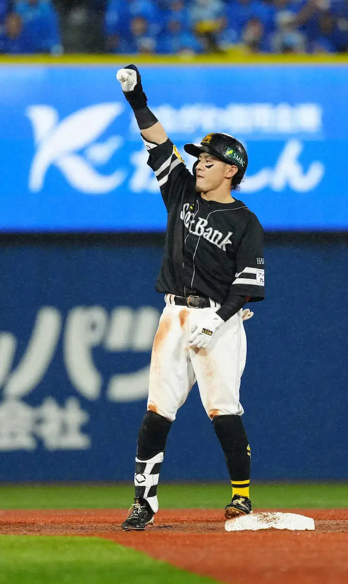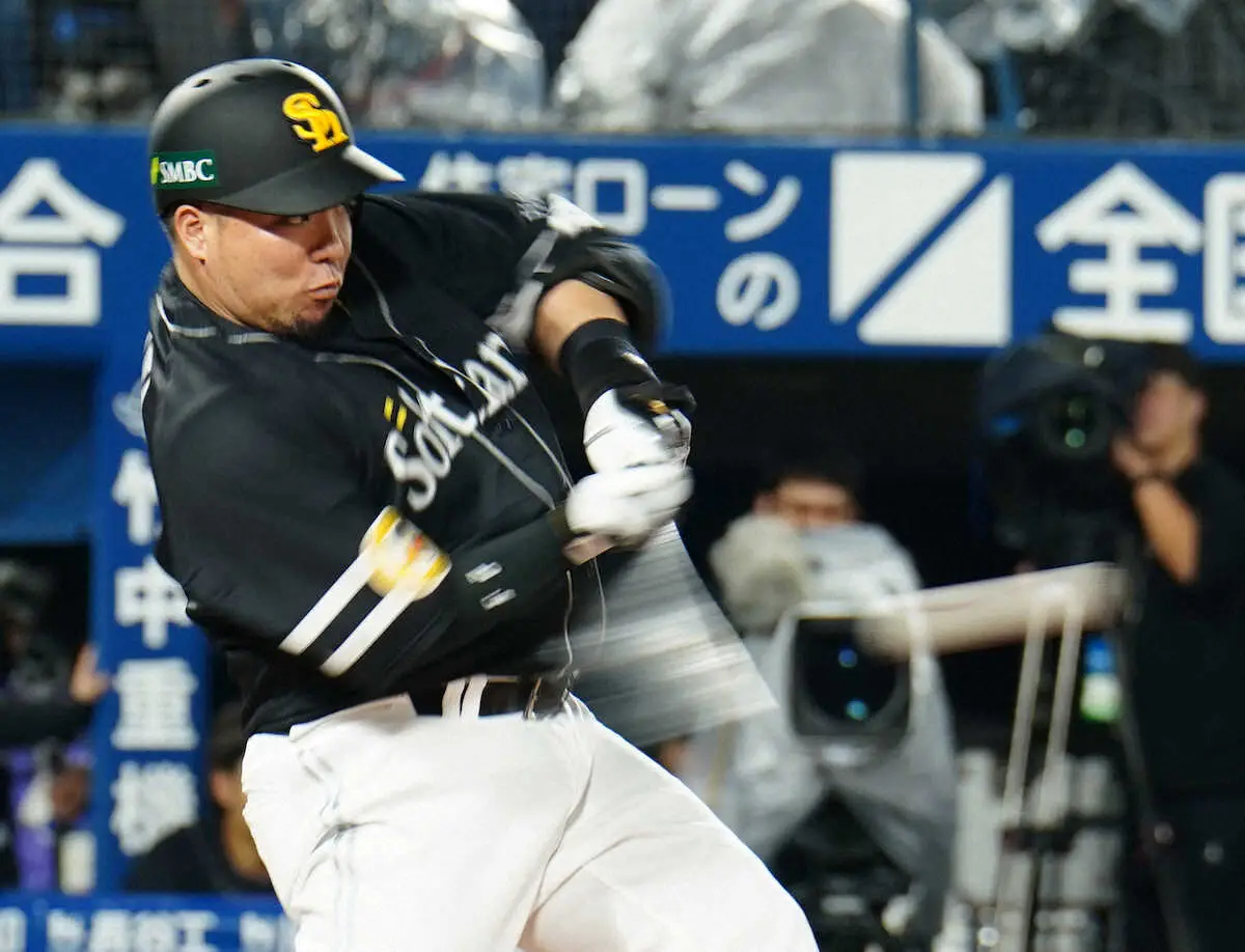<D・ソ>初回、2ランを放つ山川(撮影・島崎忠彦)