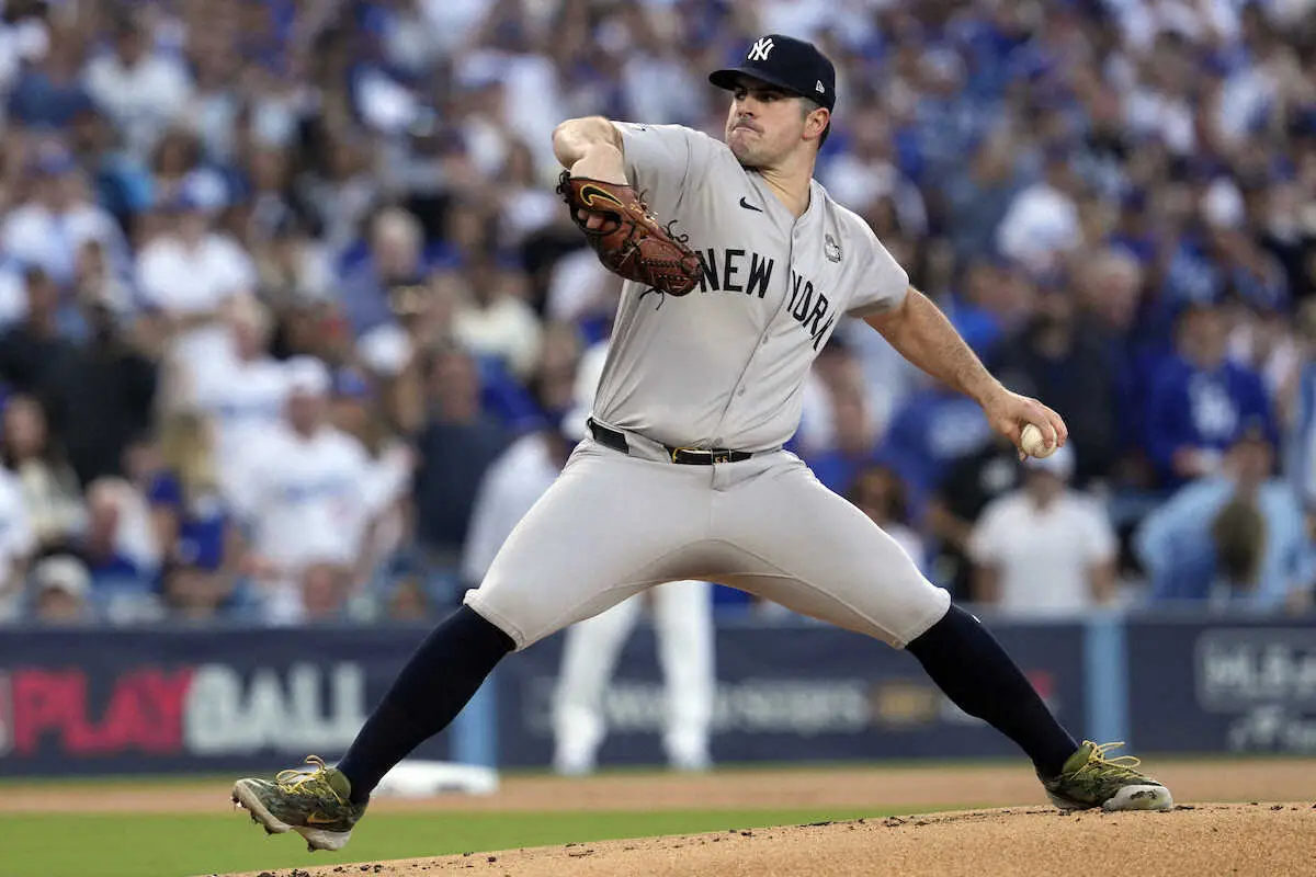 ヤンキースは第1戦で昨季サイ・ヤング賞のエース右腕コールが先発で好投し、スタントンがポストシーズン4戦連発となる2ランを放ったものの、延長10回に救援左腕コルテスがフリーマンに満塁弾を浴びて逆転サヨナラ負け。3番のジャッジは5打数1安打ながら3三振を喫し、9回には2番・ソトが敬遠された2死一、二塁で遊飛に倒れるなどブレーキとなった。