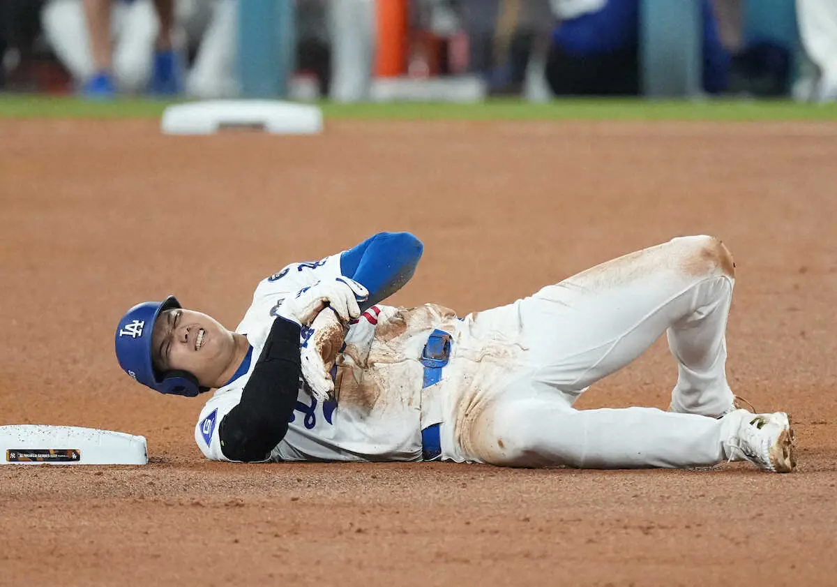ドジャースは26日(日本時間27日)、ヤンキースとのワールドシリーズ(WS=7回戦制)第2戦に4―2で勝利し、連勝で2勝0敗とした。大谷翔平投手(30)は、四球で出塁した7回、二盗を試みた際に左肩を負傷。「亜脱臼」と診断された。試合後は敵地ニューヨークへ移動したチームを離れて、ロサンゼルスで精密検査を受ける予定。28日(日本時間29日)の第3戦以降の出場は不透明な状況になった。