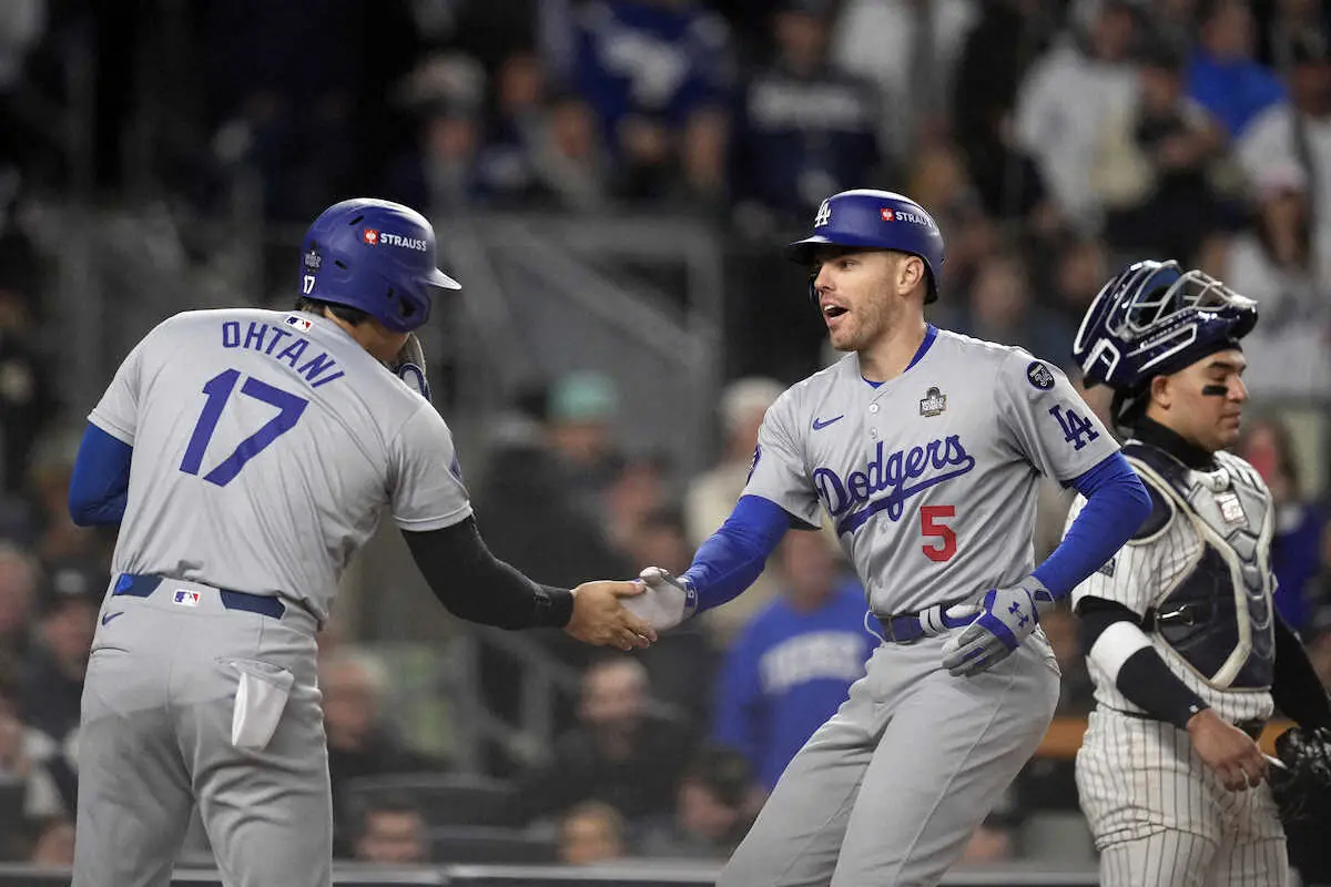 ワールドシリーズ3<ヤンキース・ドジャース>初回、ユニホームの首元を左手でつかみ、フリーマンの先制2ランで生還する大谷(撮影・沢田 明徳) Photo by スポニチ 大谷翔平 第1打席はストレートの四球 バット一度も振らず フリーマン先… ギャラリーで見る この記事のフォト 2024年10月29日の画像一覧 もっと見る 2024年10月29日の画像をもっと見る