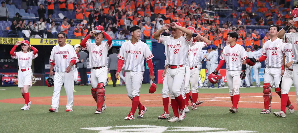 <NTT東日本・マツゲン箕島>初戦敗退しガックリと引き揚げるマツゲン箕島ナイン(撮影・奥 調)