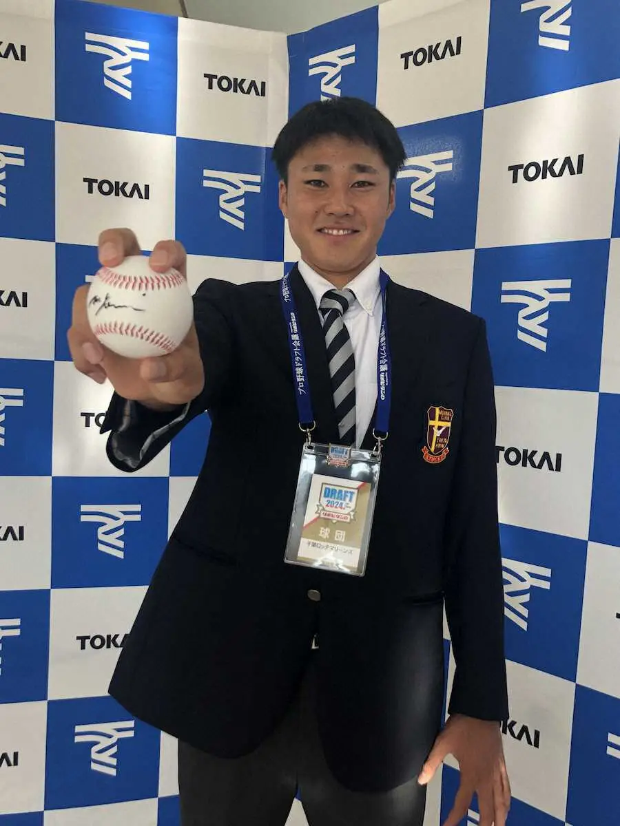 畜産を学び、グラブのウェブにもデザインするほど牛が大好き。最速153キロの直球と多彩な変化球が持ち味の右腕は「課題を一つずつクリアしていきたい。スケールが大きく先発を任せてもらえる投手になっていきたい」と抱負を口にした。