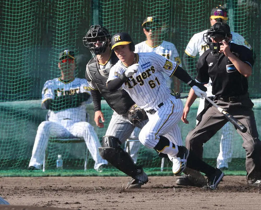 新体制始動となった秋季練習初日の10月22日。藤川監督に、育成右腕の小川と顔を間違えられるひと幕があった。一転、この日は2回1死で門別から放った右前打が、藤川阪神の初実戦で両軍通じて初安打。4回2死では浜地からの中前打と、名刺代わりとも言える快音を連発した。
