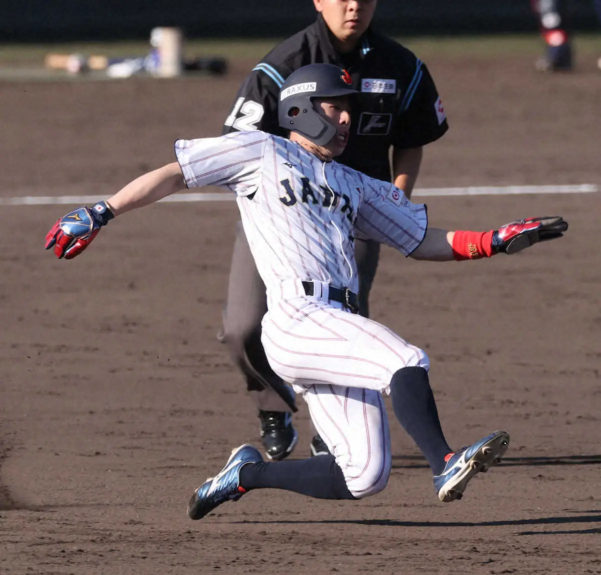 侍ジャパン「代走の切り札」五十幡が快足アピール 二盗成功→辰己の中越え三塁打で生還