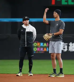 日本ハム・今川 憧れのダルビッシュと初対面に「めっちゃ感動」 練習後に2S撮影「家宝に」