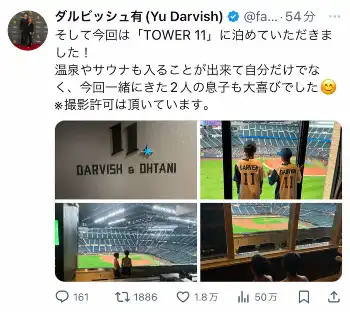 ダルビッシュ エスコン電撃訪問で宿泊した場所にファン驚き「本人が…」「宿泊していたとは」の声