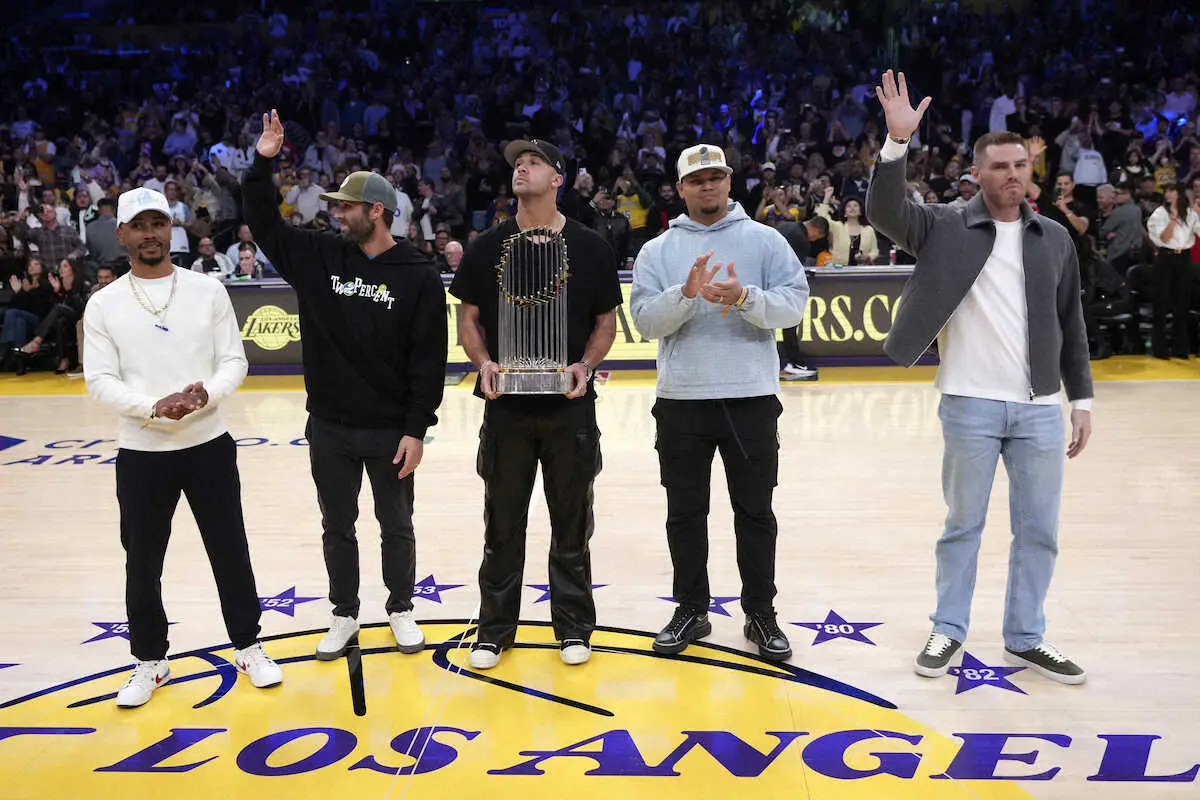 ドジャースのベッツ、フリーマン、フラーティらワールドシリーズ(WS)を制覇したメンバーが、地元ロサンゼルスでNBAレイカーズ―76ers戦を観戦した。