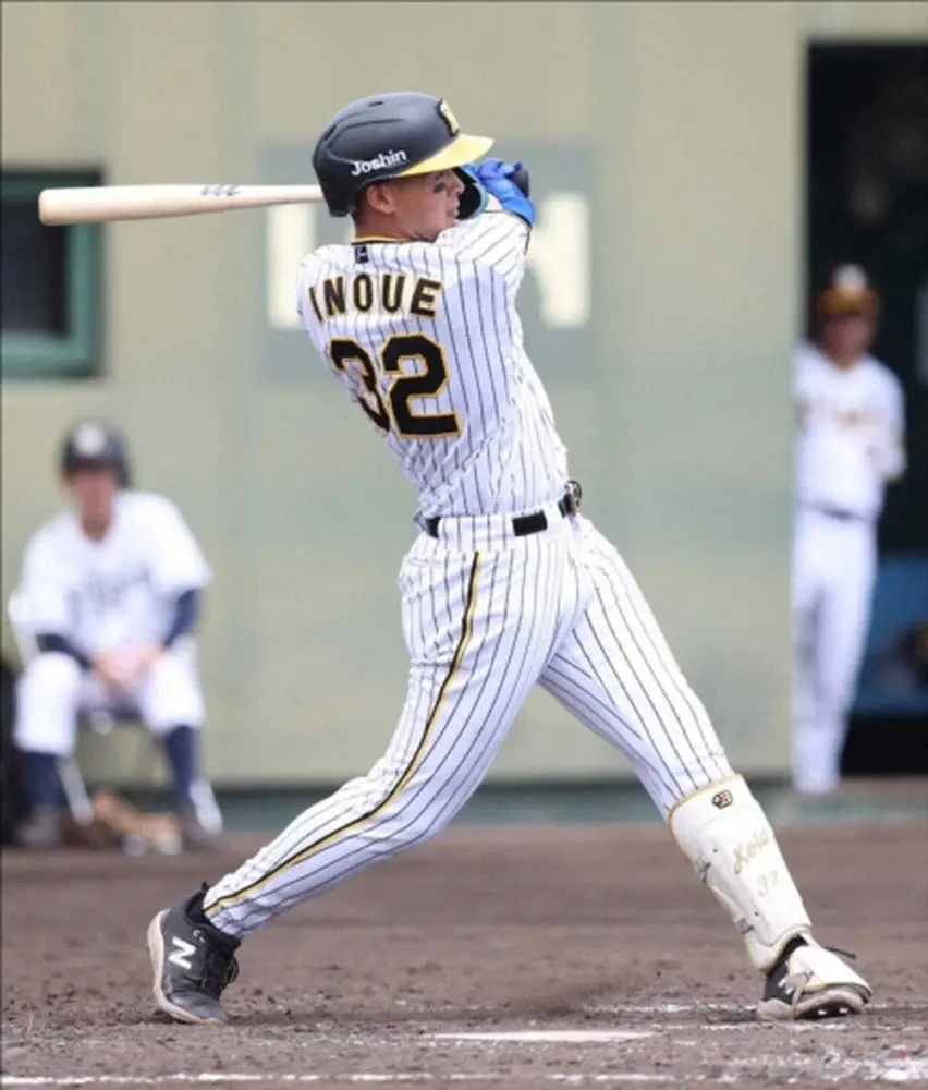 阪神の井上がランチ特打で安芸キャンプを沸かせた。
