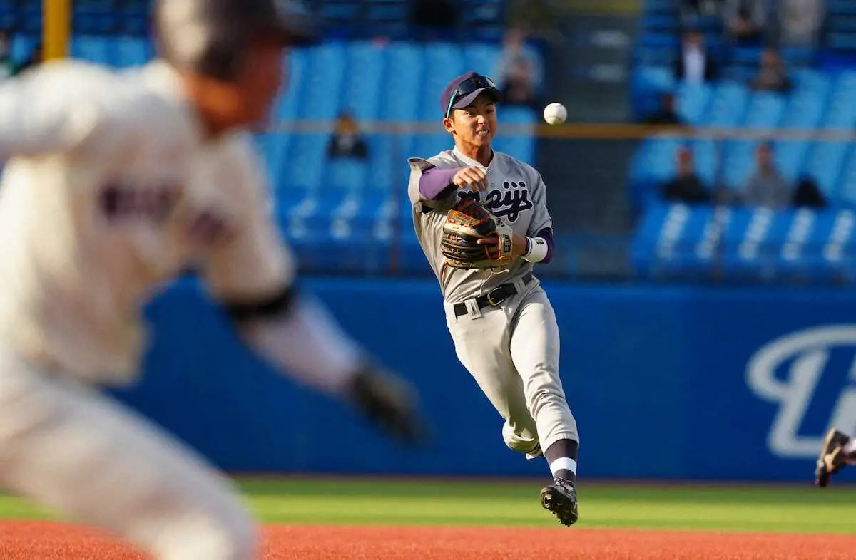 <早大・明大>7回、凡退し厳しい表情を見せる明大・宗山(撮影・木村 揚輔) Photo by スポニチ 【東京六大学】明大Vならず 楽天ドラ1・宗山塁は3打数無安打 76年ぶりの… ギャラリーで見る この記事のフォト 2024年11月12日の画像一覧 もっと見る 2024年11月12日の画像をもっと見る
