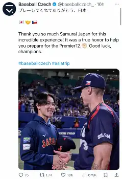 チェコ野球協会は12日までに公式Xを更新し、野球日本代表「侍ジャパン」へ感謝の思いをつづった。