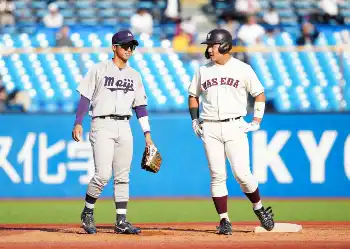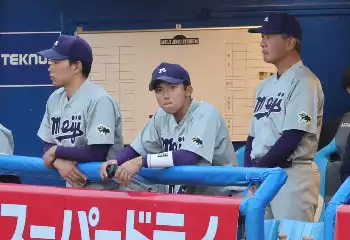 両大学による優勝決定戦は1948年以来76年ぶり。3季ぶり44度目のリーグ優勝を狙った明大は一歩及ばなかった。楽天からドラフト1位指名を受けた宗山塁主将(4年)は「3番・遊撃」で出場したが3打数無安打。2回に先制を許すと、5回に投手陣が崩れて3失点と突き放され、最後まで主導権を握ることはできなかった。