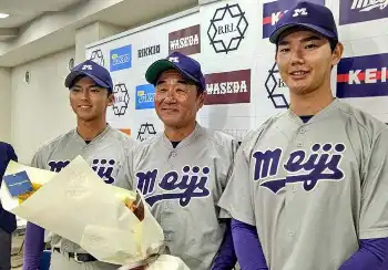 明大は15年連続ドラフト指名中で、昨年は上田希由翔主将がロッテ1位、今年は宗山塁主将が楽天1位でプロ入りを果たした。素質を伸ばす指導力とともに自ら全国各地を飛び回る「スカウト力」も武器にした指揮官。リーグ戦で戦ってきた慶大・堀井哲也監督は「彼は昔から凄く実直で野球が大好き。明治を強くするどん欲さがある。そして獲ってくる選手の質が良い。(青学大の)安藤監督か、田中監督かというくらい」と手腕を称賛した。