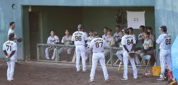 元阪神の北條が安芸キャンプを訪問 伊藤将「え?ジョーさん!」同僚と笑顔で近況報告
